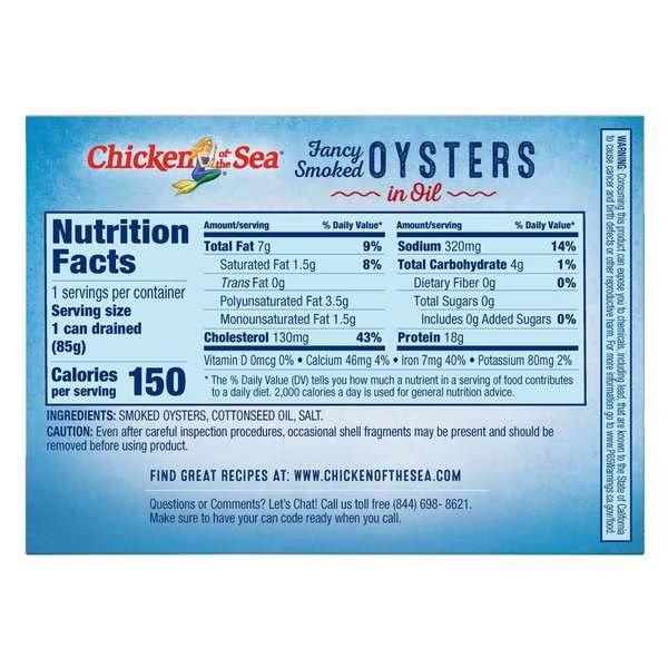 Chicken Of The Sea Smoked Oysters In Oil 3.75 oz., PK18, Chicken Of The Sea, Mfr#: 10048000000665