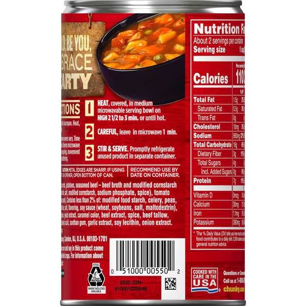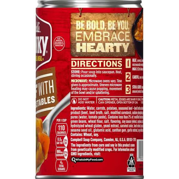 Chunky Beef With Country Vegetable Easy Open Soup 18.6 oz., PK12, Campbells, Mfr#: 000010656