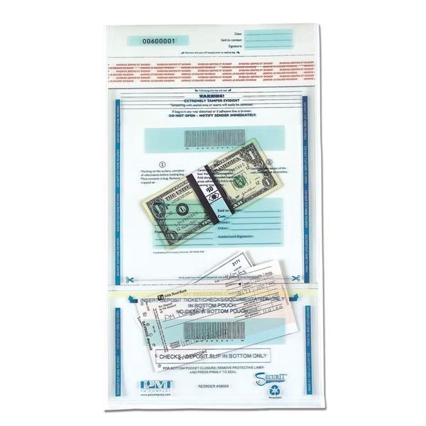 IconexTM Clear Dual Deposit Bags, Tamper Evident, Plastic, 11 x 15, 100 Bags/Pack