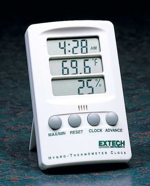 Clock Digital Hygrometer, 14 to 140 F, Extech, Mfr#: 445702