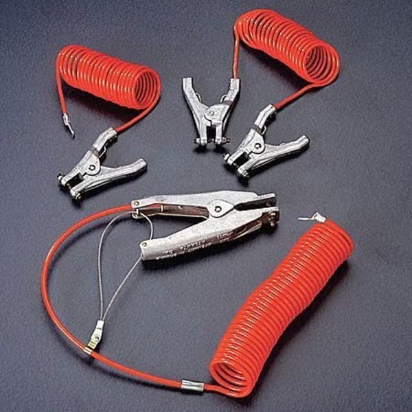 Insulated Coiled Grounding Wire, 10 ft, 3/16 in Dia, Hand Clamp & Terminal, Orange, EnjoyTool Select, Mfr#: RAC-10