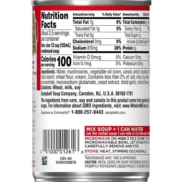 Condensed Soup Red & White Cream Of Mushroom Soup 10.5 oz., PK48, Campbells, Mfr#: 000001261