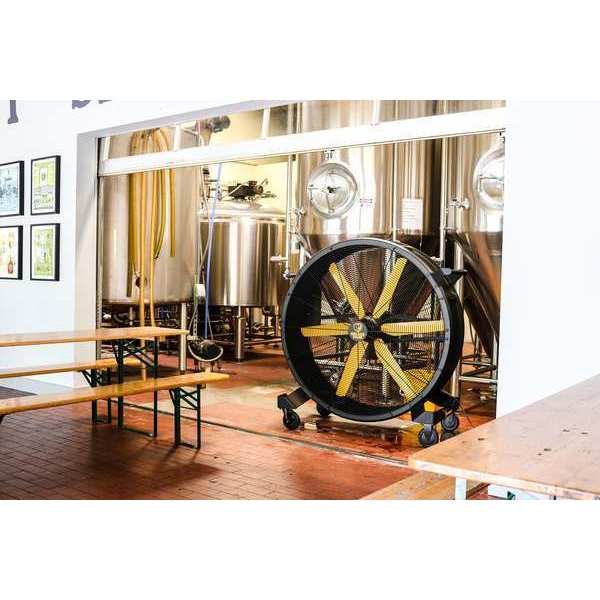 Industrial Fan, Non-Oscillating, Voltage 110 to 125V AC; 200 to 240V AC, 1 Phase, Motor HP 1/2 hp, Fan Mounting Location Mobile, Sound Level 73.3 dBA, Max. Ambient Temp. 104 Degrees F, Hz 50/60 Hz, Watts 553 W; 615 W, Motor Type Permanent Magnet, Drive Type Direct Drive, Height 59 1/2 in, Width 55 in