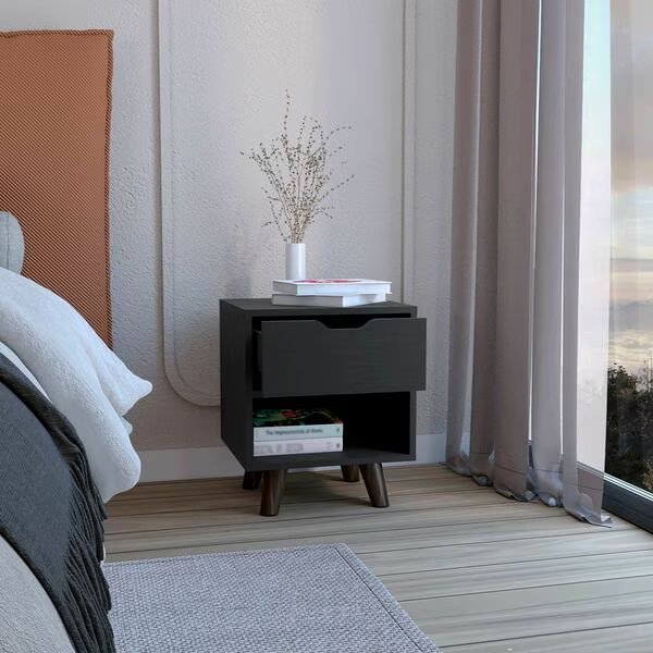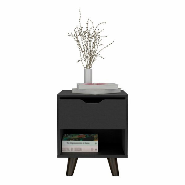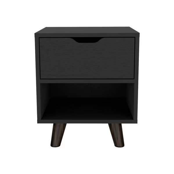 Crail Nightstand with 1 Open Storage Shelf. 1 Drawer and Wooden Legs- Black, Tuhome, Mfr#: MLW9052