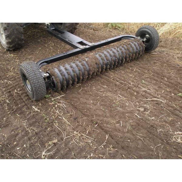 Field Tuff’s FTF-0421CPATV 48” Cultipacker is an essential tool needed in the production of crops, whether it be for your food plot or your garden. This cultipacker covers a 4 ft. wide area to efficiently break up soil clumps and firm your soil to prepare your seedbed for planting or seeding. The pin hitch allows you to pull the cultipacker behind your ATV, UTV, or utility tractor. Constructed of 21 individual cast iron packer wheels measuring 9.5” each, for optimal packing and long-lasting durability. Field Tuff’s cultipacker features knobs to crush and pulverize soil clods and to create moisture retaining dimples for the health of your soil and seed. The steel packer wheel shaft measures 1 3⁄4” in diameter to provide long-lasting wear resistance, ensuring that your cultipacker will continue working at its greatest potential. The 13” pneumatic tires give you easy maneuverability with your cultipacker while the unique, flip-over design allows you to pull the cultipacker with little effort. Field Tuff’s Cultipacker removes air pockets, creates a smooth, firm seedbed, and prevents deep seed planting to help prepare your optimal food plot. The optional FTF-HCP3PT 3-Point Hitch Kit, sold separately, allows you to mount to your Category 1 tractor.