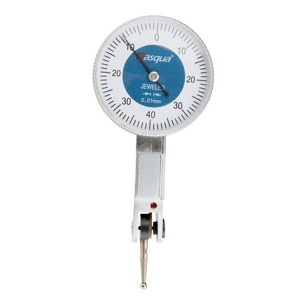 Dasqua 0-1.6mm 0.01mm Double Range Test Indicator ~ The only indicator with twice the range in the industry! ~ Reading is 0.01mm. ~ Dial is 25mm. ~ Dial reading is 0-40-0. ~ Easy-to-read tilted dial. ~ Provided with 2 extra contact points - 0.04" & 0.12". ~ High precision contact point. ~ 210°swivel arc. ~ Jeweled bearing. ~ Automatic reversal.