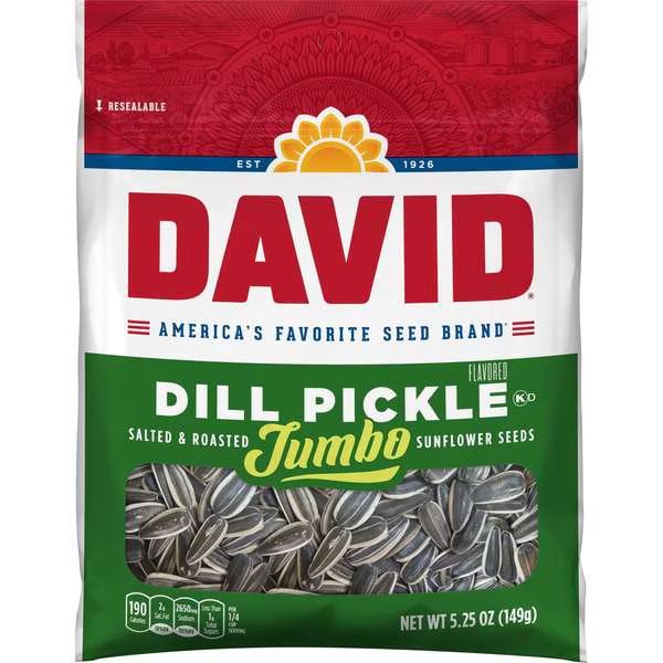 David Dill Pickle Sunflower Seeds 5.25 oz., PK12, David, Mfr#: 2620046462