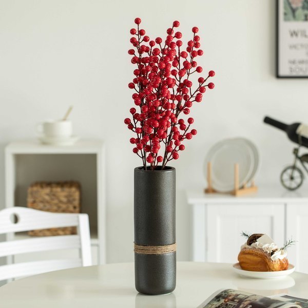 Decorative Modern Ceramic Cylinder Shape Table Vase Flower Holder with Rope, Black, PK 2, Uniquewise, Mfr#: QI004362.2.BK