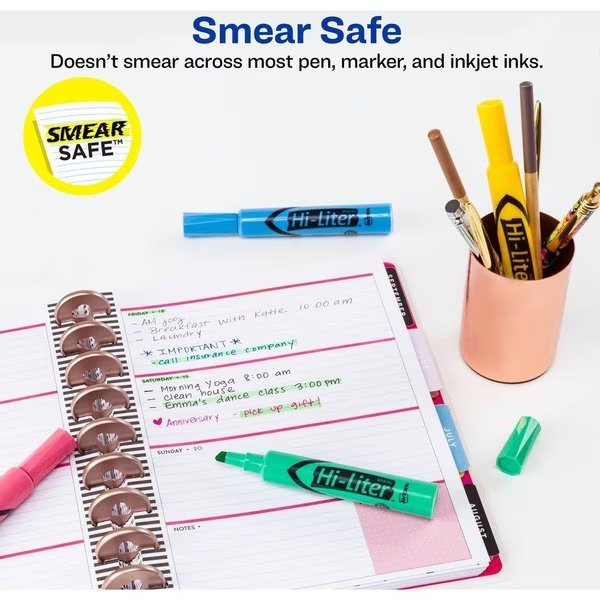The original highlighter offers vibrant read-through colors and a molded chisel tip to highlight or underline. Durable plastic tip for smooth highlighting - won't fray or mush. Improved formula allows you to leave the cap off for up to one week and still highlight. Quick-drying, nontoxic ink is ACMI certified (conforms to ASTM D 4236).