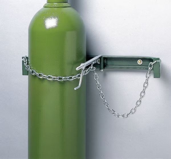 Double Cylinder Bracket, Number of Cylinders Held 2, Compatible Cylinder Diameter (Maximum) 12 7/8 in, Compatible Cylinder Diameter (Minimum) 3 in, Cylinder Securing Mechanism Chain, Bracket Material Steel, Overall Width 25 in, Overall Height 2 in, Overall Depth 5 1/4 in, Mounting Location Wall, For Use With Actel Cylinder, Oxygen Cylinder