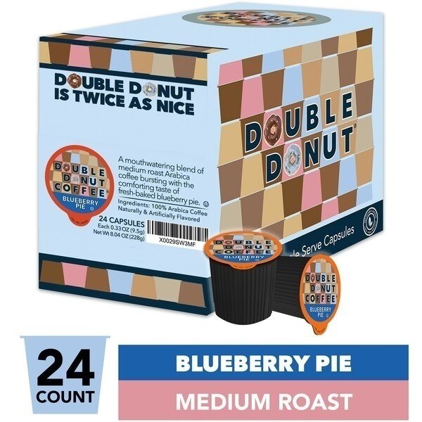 Blueberry Coffee in Recyclable Single Serve Pods, Flavored Coffee for the Keurig K Cups Brewer, from Double Donut, 24 Cups