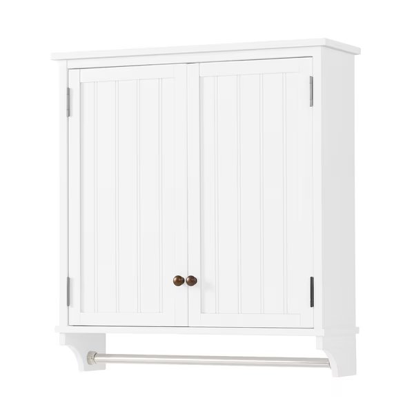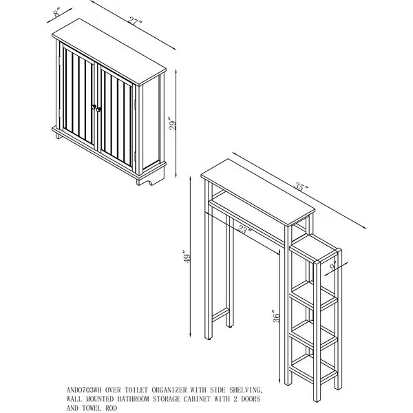 Dover Over Toilet Organizer with Side Shelving, Wall Mounted Cabinet with 2 Doors and Towel Rod, Alaterre Furniture, Mfr#: ANDO703WH