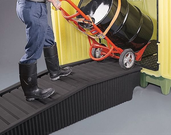 Drum Hut Ramp, Color Black, Compatible Spill Containment Height 15 in, Dimensions 118 in L x 31 in W x 15 1/4 in H, For Use With ENPAC 4000-YE, For Use With Brand ENPAC, For Use With Mfr. Model Number 4000-YE, Height 15 1/2 in, Includes (2) Extenders, Indoor/Outdoor Use Indoor, Outdoor, Length 118 in, Load Capacity 1,000 lb, Manufacturer Warranty 1 yr, Material Polyethylene, Nonslip Yes, Number of Wheels 2, Product Type Spill Pallet Ramp, Product Weight 154 lb