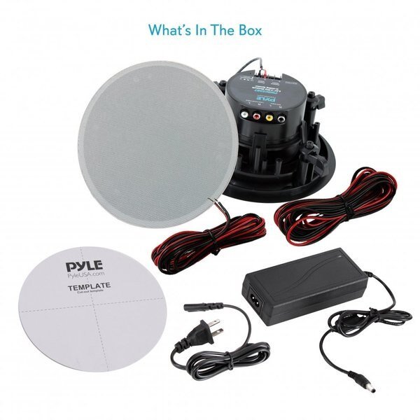 Features: - In-Wall / In-Ceiling Home Speakers - Active + Passive Speaker System - Built-in Bluetooth Wireless Receiver - Universal Flush Mount for Any Flat Surface - Flat & Thin, Slim-Style Removable Speaker Grill - Convenient Magnetic Speaker Grill Quickly Attaches / Detaches - Digital Sound Processing Amplifier - Ability to Connect External Devices - RCA Audio Aux (L/R) Connectors - 2-Way Full Range Stereo Sound Reproduction - 1/2'' High Compliance Polymer Tweeter - Polypropylene Cone with Rubber Edge - Cut-Out Template for Easy Installation - Integrated Clamp-Type Mounting Brackets - Environmentally Friendly ABS Construction - Perfect for Custom Audio Applications - Used for Home, Office & Business What’s in the Box: - (1) 5.25’’ -inch Active Speaker - (1) 5.25’’ -inch Passive Speaker - (2) Speaker Connection Wires, 9.8’ ft. - Cut-Out Template - Power Adapter Technical Specs: - Power Output: 240 Watt MAX - Speaker Style: Round / Circle - Frequency Response: 80Hz-20kHz - Impedance: 8 Ohm - Sensitivity: 87 +/- 2 dB @ 1W/1M - Cut-out Diameter: 4.7'' -inches - Active Speaker Mounting Depth: 2.94'' -inches - Passive Speaker Mounting Depth: 2.78’’ -inches - Power Supply: 110/240V (12V Power Adapter)
