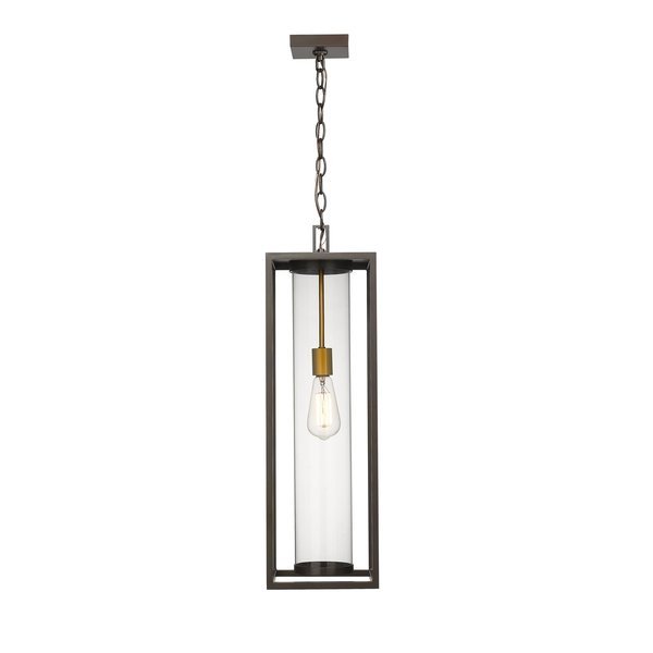 Dunbroch 1 Light Outdoor Chain Mount Ceiling Fixture, Deep Bronze + Outdoor Brass & Clear, Z-Lite, Mfr#: 584CHB-DBZ-OBS