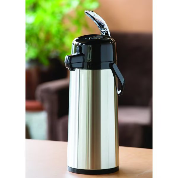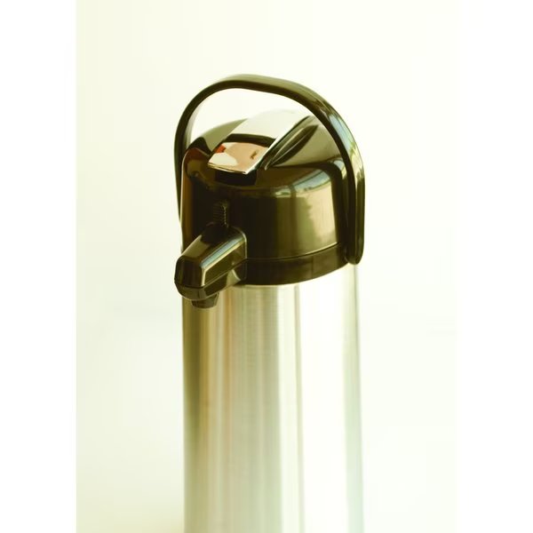 Our Eco-Air® Smooth Body Airpot features a thick, dent-resistant outer shell--just give it a big squeeze to feel the quality. The glass vacuum insulation keeps contents warm for 6-8 hours and is great for holding coffee for a long period of time. Easy-to-use lever lid takes little effort to dispense coffee.