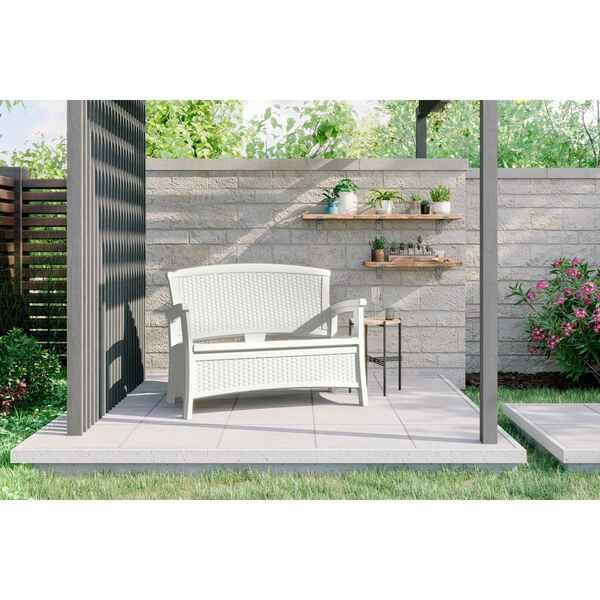 Elements Ice Cube Loveseat with storage has a beautiful wicker pattern and built-in storage beneath the seat.