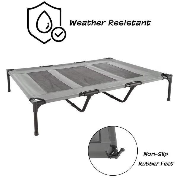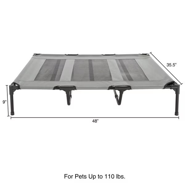 Elevated Portable Pet Bed Cot-Style 48”x35.5”x9” for Dogs and Small Pets | Indoor/Outdoor (Gray), Pet Adobe, Mfr#: 532169MPL