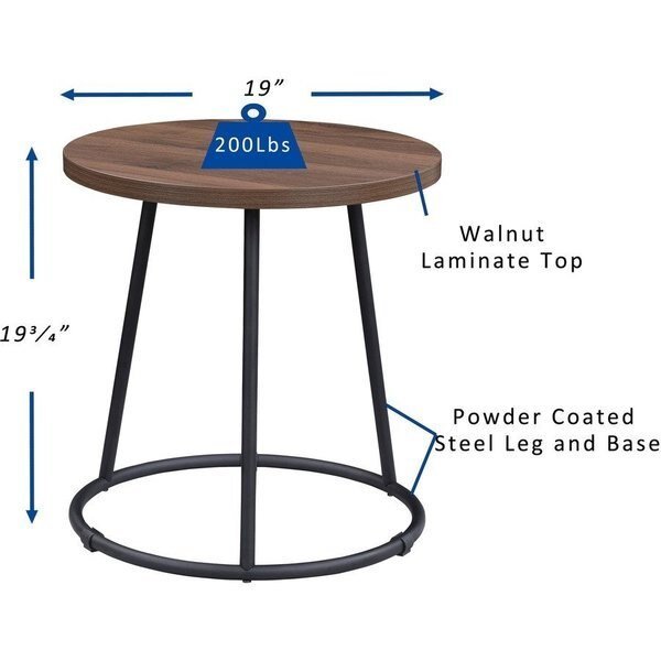 End Table, Round, Steel Base, 19"x19-3/4", Walnut, Lorell, Mfr#: LLR16261