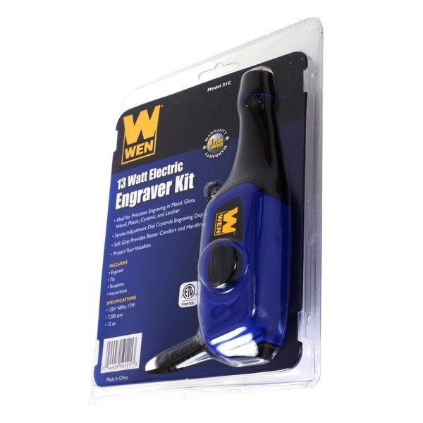 Remember when your coworker accidentally stole your favorite stapler. Prevent accidental theft from happening again with the WEN Engraver. Our powerful yet compact design allows for users to carve initials pictures or whatever else their heart desires into plastic, ceramic, leather, metal, glass and wood. Simply plug it in; flick the switch on the back adjust to the desired speed and start engraving. Easily carve your name into a tool chest, wrenches, plates or whatever else your heart desires. This package includes a sturdy and sharp tungsten carbide tip along with a set of two stencils consisting of numbers, letters and symbols. Never get your stuff stolen again. Carve your name in it with the WEN Engraver.
