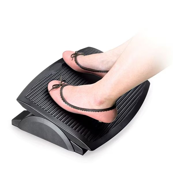 The Aidata Footrest is ergonomically designed to help maintain correct posture and reduce strain and fatigue while sitting. An elevated platform lifts the feet to reduce pressure on the legs, which improves circulation and eases stress on your neck and back. A free gliding angle design allows up to 20° of incline to keep your feet at the most comfortable angle while the gliding motion itself promotes active feet to keep blood flowing. A large foot platform measuring 17.8” x 13.8” ensures both feet can remain comfortably flat and spaced. The high-impact plastic construction and rubber no-skid grips keep the entire footrest sturdy and in place during use. The Aidata footrest is the perfect accessory to keep your feet comfortably supported while reducing the risk of injury or other health issues caused by bad posture!
