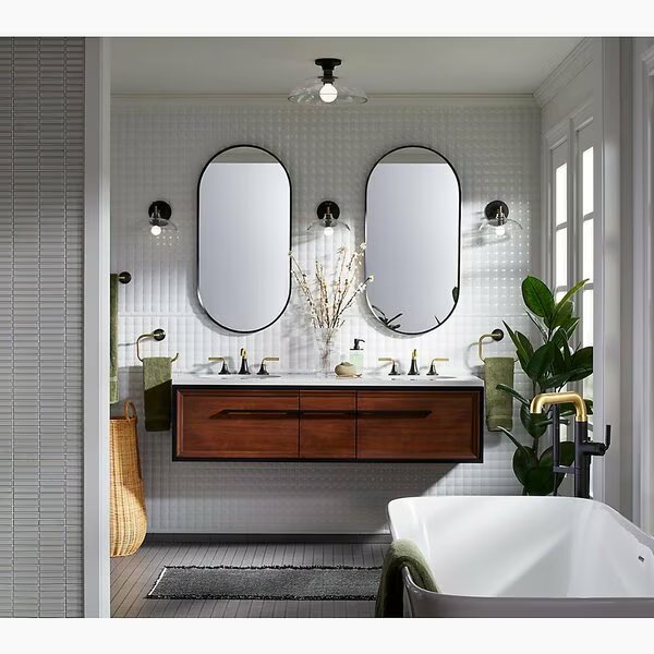Reflecting Kohler signature quality and attention to detail, the KOHLER Essential mirror collection is the perfect way to complete your space. Drawing on simplicity and versatility, the collection is available in three soft silhouettes and a variety of dynamic finishes. Add a touch of sophistication and character to any part of the home with a KOHLER Essential mirror.