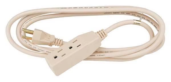 Extension Cord, Location Indoor, Cord Length 9 ft, Wire Size 16 AWG, Max. Amps 13 A, Voltage 125V AC, Plug Configuration NEMA 5-15P, Receptacle Configuration NEMA 5-15R, Cord Ending Block, Number of Outlets 3, Jacket Color Beige, Jacket Material PVC, Trade Designation SJT, Cord Shape Round, Temp. Rating 0 Degrees to 167 Degrees F, Number of Conductors 3, Power Indicator No, Plug Style Straight, Max. Watts 1,625 W, Nominal Outside Dia. 0.32 in
