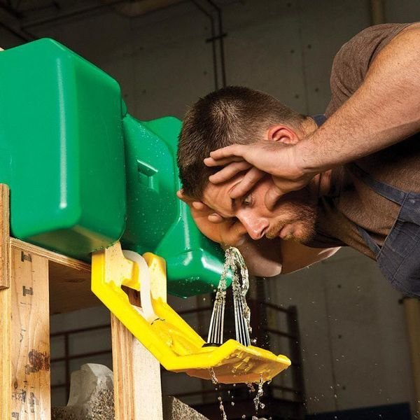 Eyewash Station, Activation Pull Tray, Color Green, Coverage Eyes, Depth 10 in, Height 15 in, Width 22 in, Environment General Purpose, In Solution Shelf Life 4 mo, Included Media Media Sold Separately, Maximum Flow Rate 0.4 gpm, Media Type Water Preservative, Minimum Operating Temperature 60 Degrees F, Mount Type Wall, Portable Water Supply Type Gravity-Fed, Refill Type Bottle, Tank Capacity 9 gal, Tank Material Plastic, ANSI Compliance Primary