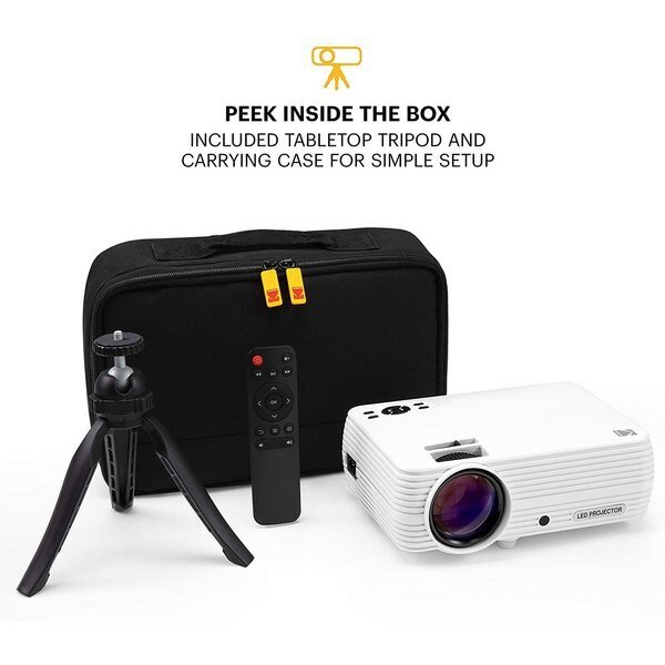 Your favorite flicks—supersized! Experience the wonder of the big screen indoors or outside with the FLIK X7 Home Projector from KODAK. This powerful device is small in stature but produces amazing 720p images up to 150” (with HD support up to 1080p). Whether you’re hosting a gaming party, watching movies, streaming TV or sharing photographs, content appears crisper, clearer and more brilliant than before thanks to KODAK’s long-lasting LED lamp and improved brightness. Built-in keystone correction helps balance the image vertically for perfectly rectangular results, while manual focus allows for effortless adjustment. Celebrated for its wide compatibility, the projector connects to all of today’s popular devices. Use the onboard AV, HDMI, VGA, USB and TF/3.5mm inputs to project shows or documentaries from a TV stick; watch videos from a laptop or tablet; plug and play content from a DVD player, TV box, flash drive, Chromecast, Xbox or PlayStation; or connect to your Android or Apple smartphone (just bring your own HDMI adapter). The projector also comes with integrated stereo speakers, tripod, remote control and cables to get you started. Stay home, head outside or hit the road—but never leave your favorite programming behind! Add a FLIK X7 Home Projector from KODAK to your cart today!