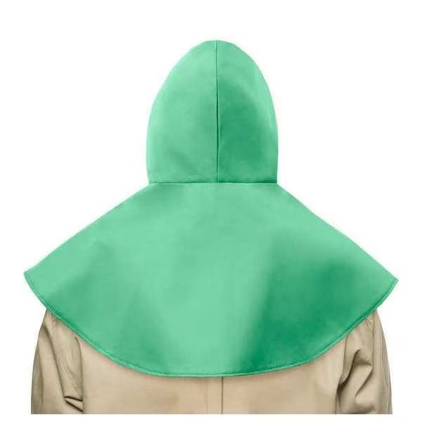 Areas Covered Ears, Head, Neck, Shoulders, Color Green, Fabric Weight 9 oz, Features Cool, Hook and Loop Closure, Flame Resistance for up to 50 Home or 25 Commercial Washings, One Size Fits Most, Rot and Mildew Resistant, Anti-Static, Garment Type Hood with Neck and Shoulder Drape, Heat Protection Type Flames, Sparks, Includes Lining No, Material Cotton, Neck Closure Hook and Loop, Passes ASTM F6413 Flame Test D6413-10, Standards ASTM D6413-10, FR Cotton Welding Hood