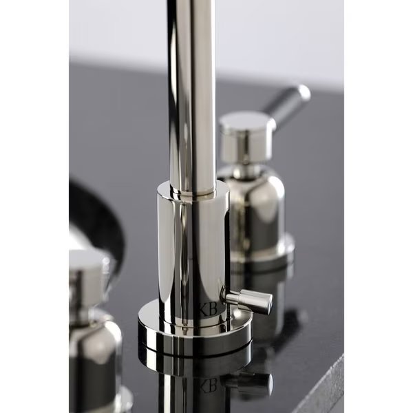 This faucet tastefully interweaves top-notch ergonomic design and the sheen of contemporary simplicity with its black silicone rubber coated handles and cylindrical facets. Ideal for more spacious bathrooms, widespread faucets are more spread apart and feature a 3-hole installation. The Kaiser widespread bathroom faucet with brass pop-up and its featured sturdy brass construction and premium polished nickel finish are guaranteed to glamorize your home's modern ensemble for years to come. Furnish your home surrounding with the modern flair of this fixture. A matching finish drain is also included.