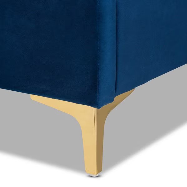 Fabrico Glam and Luxe Navy Blue Velvet Upholstered and Gold Metal Queen Size Platform Bed, Baxton Studio, Mfr#: 214-10941-ZORO