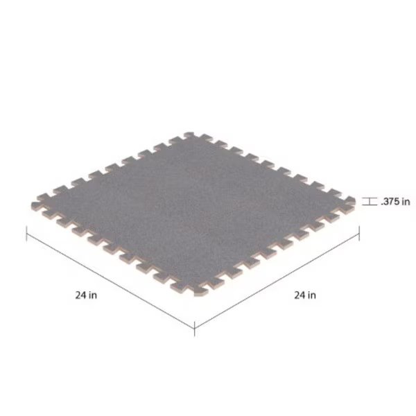 The 6 Pack of Carpeted Foam Floor Tiles from Fleming Supply will add 3/8-in of padded carpet to any floor in your workout room, classroom, playroom, or basement without any adhesive or stapling. The set of six 24 x 24-in interlocking EVA foam tiles come with 12 border pieces that offer the ability to create an area rug look great for entryways, patios, or in a workshop where you might stand for long periods of time. Whether you need extra cushion for a child or for exercising, the tile's unique carpet feel underfoot provides extra traction set and comfort wherever you need them.