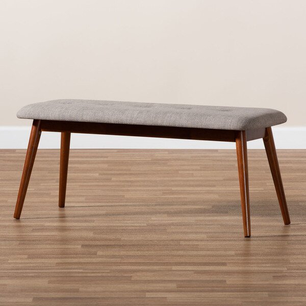 Flora Light Grey Upholstered Oak Finished Wood Dining Bench, Baxton Studio, Mfr#: 157-9350