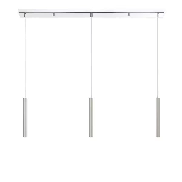 Construct a breathtaking modern visual with the delicate features from this stunning three-light pendant light. Windchime-inspired, the elongated lights boast a bright brushed nickel finish.