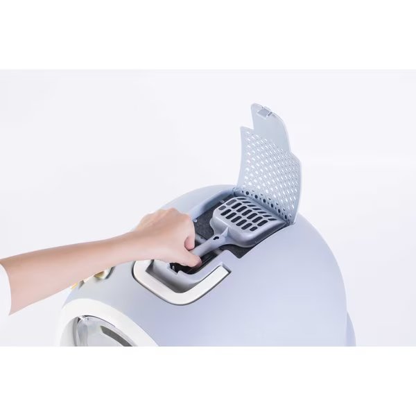 This cat litter pan with dome cover encloses cats on all sides, providing privacy for your kitty while maintaining litter-free floors. Handle on top of the dome makes it easy to carry and latch securely locks the lid onto the base. Carbon filter- absorbs, traps and removes odors, so it can be placed in any room. Removable plastic door provides easy in and out access for your cat, whereas the raised entrance prevents cats from tracking litter out. Additionally, the sliding tray and litter scoop makes it easy to clean.