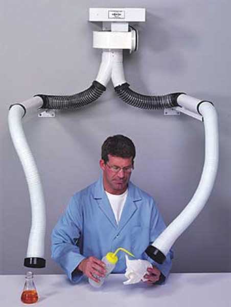 Fume Extractor Arm, Wall Mount Bracket Assembly Mount, Polyurethane Powder Coated, White, Diameter 3 in, Range 33-48 in, Overall Length 57 in to 92 in, Includes 24 in Hard Duct Swivel Boom, Extractor Arm, Mounting Bracket