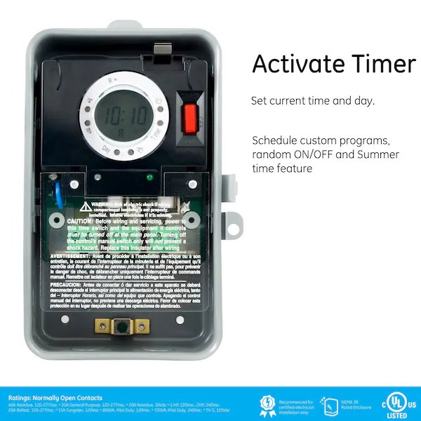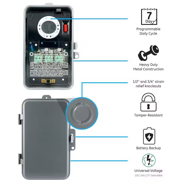 GE 7-Day Digital Metal Box Timer, Outdoor 7 Day 7 On/Off Per Day 2Hp, Ge, Mfr#: 46537