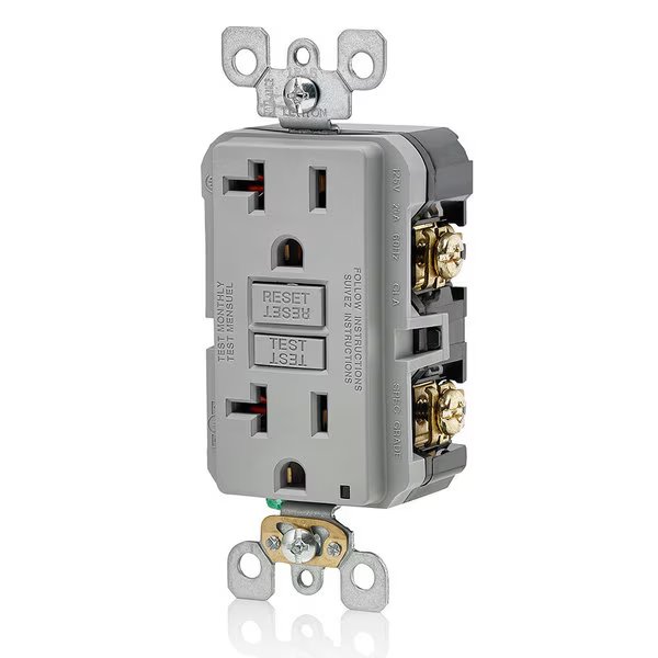 GFCI Receptacle, 20A, 125Vac, 5-20R, Gray, Leviton, Mfr#: GFNT2-GY