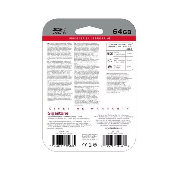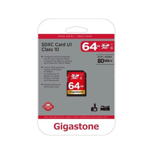 GIGASTONE SDHC 64GB, Gigastone, Mfr#: GS-SDHC80U164G