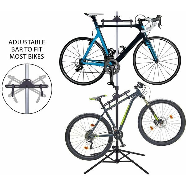 Stop racking your brain. Start stacking!Whether youre living in a small apartment or want to reclaim space in your garage, this Freestanding Bike Rack Garage from RaxGo safely stores your ride without any permanent mounting or hanging required. Compatible with bikes of all shapes, sizes and functions, this bike rack for garage features a durable powder-coated steel frame, adaptable arm supports, nonslip rubber cradles, sturdy adjustable legs, 1-bike load capacity and an ample 44-pound weight limit.To comfortably fit each bikes frame onto the shelves, rotate the knobs, move the arms up or down, then lock into place. The assembly of the bike storage garage is fast and simple. Just follow our handy diagrams, and youre stacking in no time. From mens mountain and commuter bikes to hard-to-mount womens frames and childrens trikes, theres nothing you cant store! Take back your living spaceadd a RaxGo vertical bike stand to your cart today!