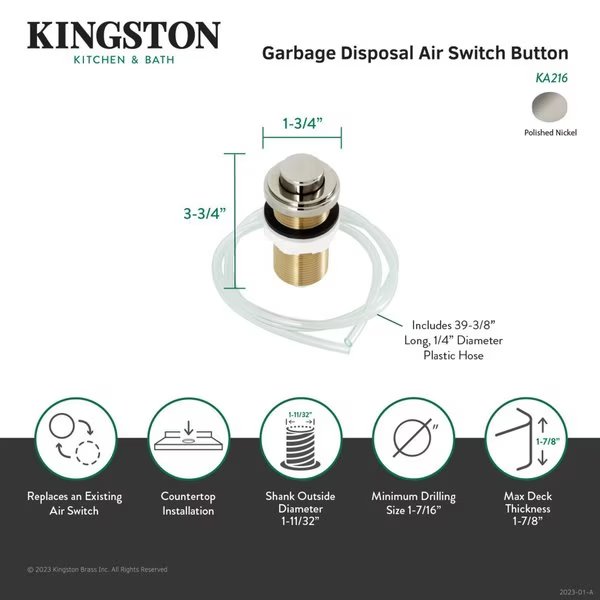 Garbage Disposal Air Switch Button, Polished Nickel, Kingston Brass, Mfr#: KA216