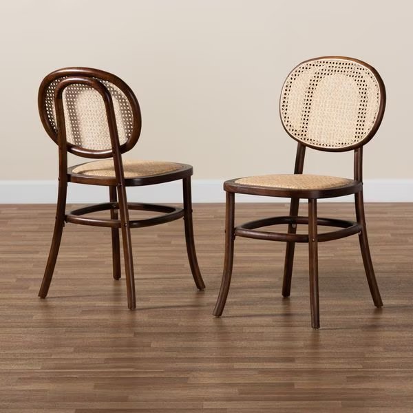 Garold Mid-Century Brown Woven Rattan and Walnut Brown Wood 2-Piece Cane Dining Chair Set PR, Baxton Studio, Mfr#: 195-2PC-12387-ZORO