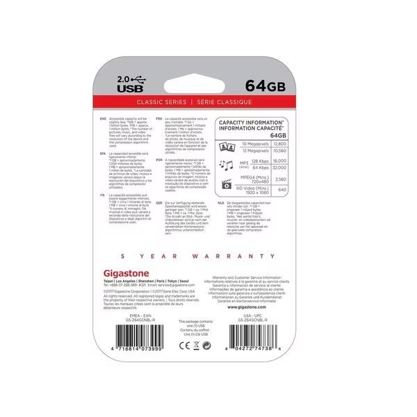 Share every special moment with friends and family by using the Gigastone USB 2.0 flash drive. It is the perfect solution for storing and transferring documents photos videos and music. Gigastone USB 2.0 drive has a unique grip-friendly and top quality rubberize housing that makes it easy to handle and use. This USB drive is tested under strict quality standards.
