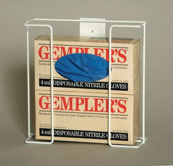 Glove Box Dispenser, Box Opening Orientation Front, Box Orientation Horizontal, Dimensions 10-1/2 in H x 11 in W x 4 in D, Dispenser Layout 2 Boxes, FDA Compliant No, Fill Direction Left Load, Glove Dispenser Type General Purpose, Dispenser Contains Standard Glove Box, Color White, Depth 4 in, Height 10 1/2 in, Material Enamel-Coated Steel Wire, Width 11 in, Holder Mount Location Wall