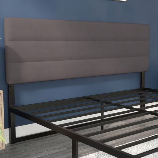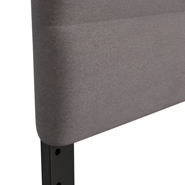 Clean lines and a tailored design are hallmarks of this padded, tufted metal headboard that has something for everyone. Available in multiple colors and boasting horizontal channel stitching, this modern headboard will give you a comfy, cozy feel at a price that is easy on your budget. The rectangular shape, upholstered in soft but durable faux linen, will make a statement in any room. Durably constructed with solid iron framework, this headboard is long-lasting for years of use. Pre-drilled holes in the legs let you adjust the headboard to your desired height from 44.5"H - 57.25"H while the universal design fits most platform as well as standard bed frames. Plastic floor glides prevent damage to your hard flooring surfaces when the headboard is moved. Assembly is easy and takes less than 30 minutes with the included hardware and illustrated instructions. Wipe your new headboard clean with a damp cloth to maintain the appearance.