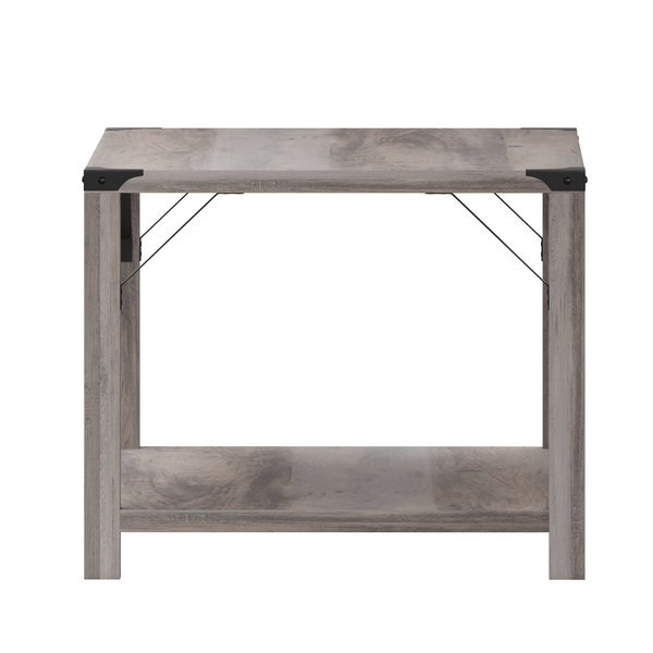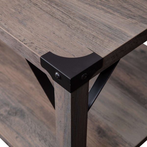 Plan a cozy gathering in your home with this trendy 2tier farmhouse style coffee table ideal for your living space The warp resistant engineered wood frame with powder coated diagonal metal side bracing gives you longlasting performance while the metal corner accents give a pop of sophistication that will always be welcome in any aesthetic Place drinks, snacks, or decor on the upper tier that holds up to 125 lbs static weight and keep throw blankets handy for movie night on the lower tier of open storage that holds up to 50 lbs static weight Fixed floor glides prevent damage to your indoor flooring surfaces and a damp cloth is all that is required to maintain the appearance of your new table that assembles in 60 minutes or less Pair with our matching console or side tables for a cohesive theme throughout your home