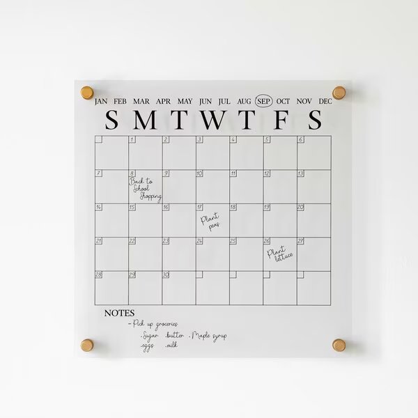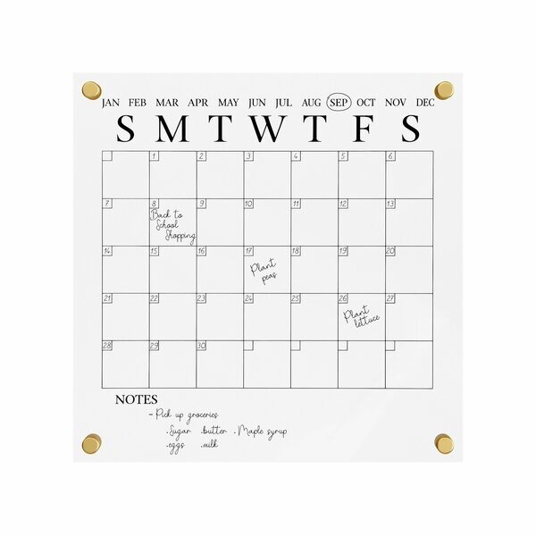- •14 Inch square wall mount acrylic dry erase monthly calendar