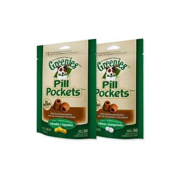 Pets are smart about avoiding their meds but you're smarter. Designed and recommended by vets GREENIES PILL POCKETS Treats for Dogs make it easy to give your dog medicine. Don't hide medicine in human foods such as peanut butter or cheese. Give a healthy low-calorie dog treat instead. GREENIES PILL POCKETS Treats take the stress and mess out of administering capsules or liquid medication to your dog. Our easy-to-use pouches mask the smell and taste of medicine and deliver a delicious hickory smoke flavor your dog will love.