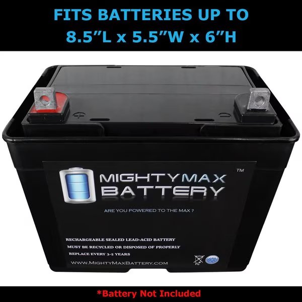 The Mighty Max Battery Box is designed for group U1 batteries. Designed to effectively collect battery acid, allows adequate ventilation, secures and locks the lid to the base, and prevents accidental contact of underground battery terminals. Designed for rugged environments; impact resistant down to -20 degrees Fahrenheit, withstands acid, gas, oil and other contaminants, and immune to UV exposure. Heavy-duty grade battery box for automotive, marine, lawn and garden and more; designed for a single group U1 battery. Compact design; features reinforced handles to prevent cracking during relocation and ventilation holes for releasing battery gases. Keeps your battery safe; limits water entry, effectively collects battery acid, allows adequate ventilation, and protects against accidental contact of battery terminals. Certified and tested; meets United States Coast Guard USCG Code of Federal Regulations 183.420 and American Boat and Yacht Council ABYC E-10.7 specifications.